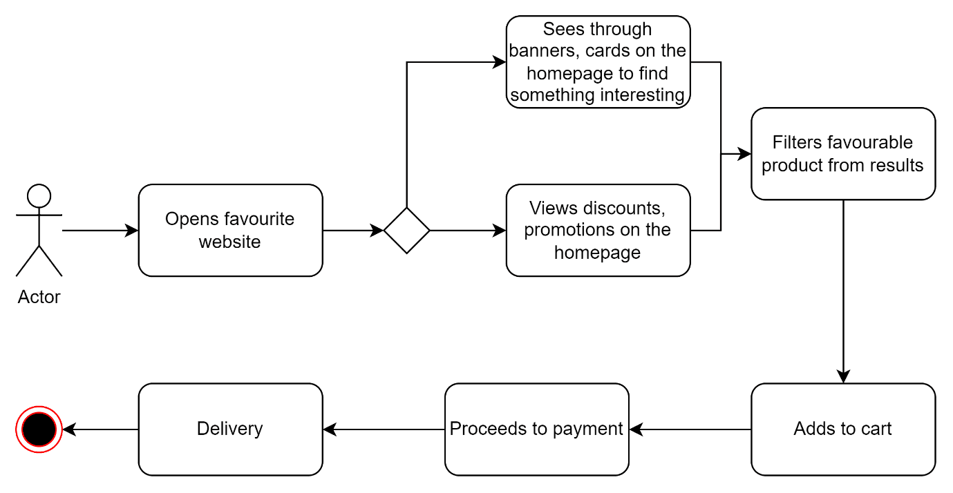 User has a goal in mind and lands on their favourite website.